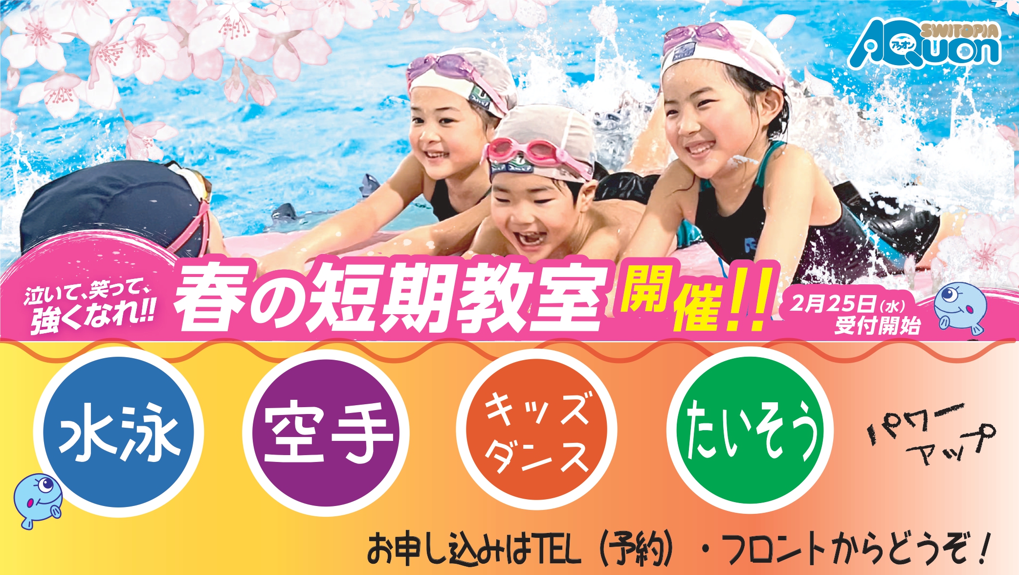 アクオンでは、子どもから大人まで幅広い世代で楽しめるようその方に合わせた様々なプログラムをご用意しております。