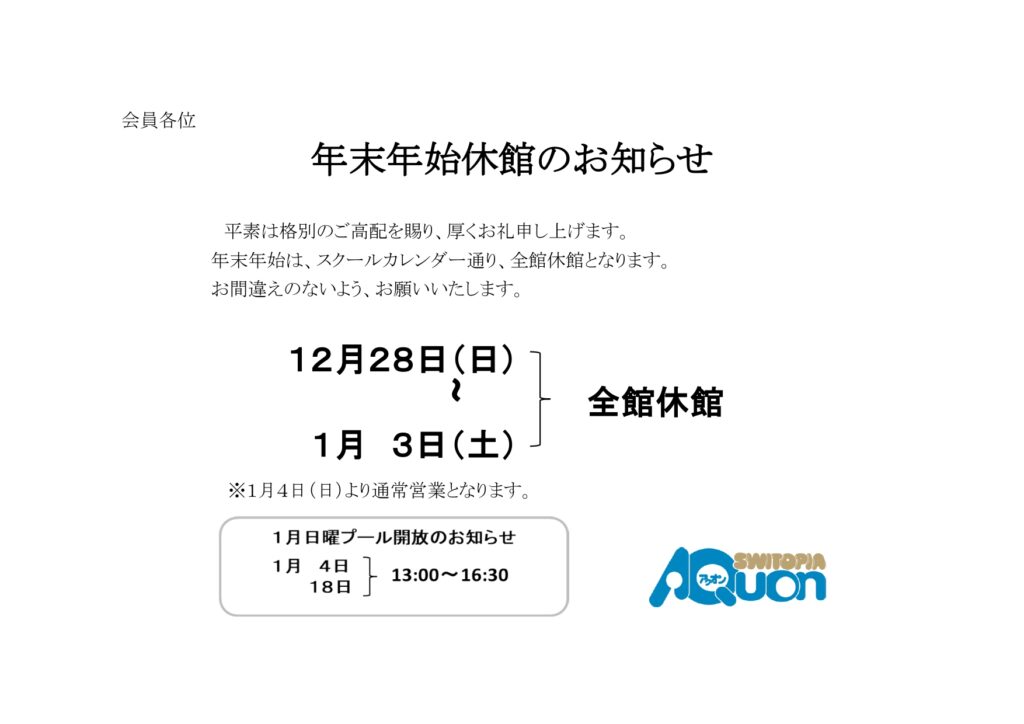 【12月】年末年始休館のお知らせ